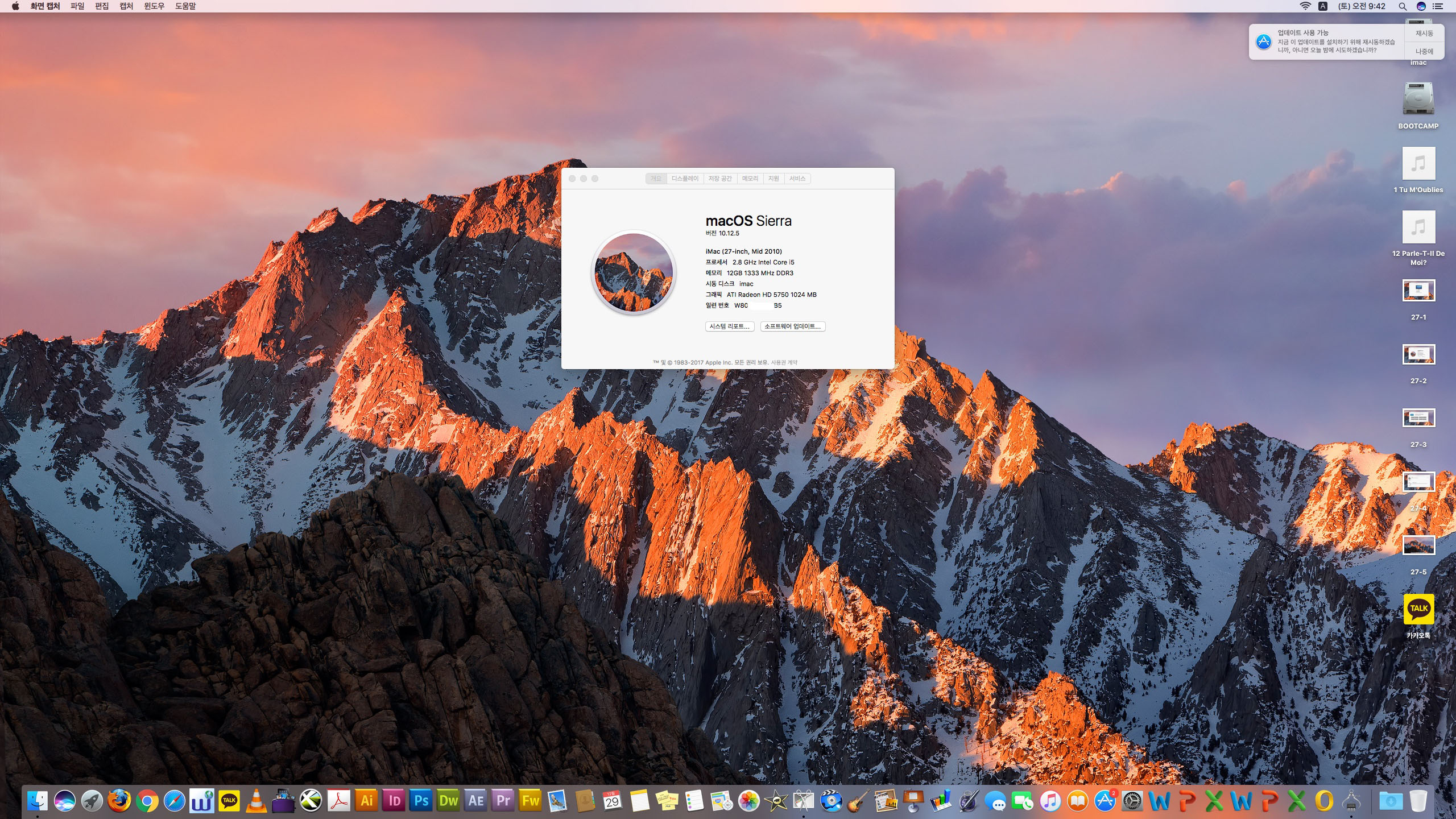 맥os 시에라와 디자인편집프로그램들 설치되어 있습니다
